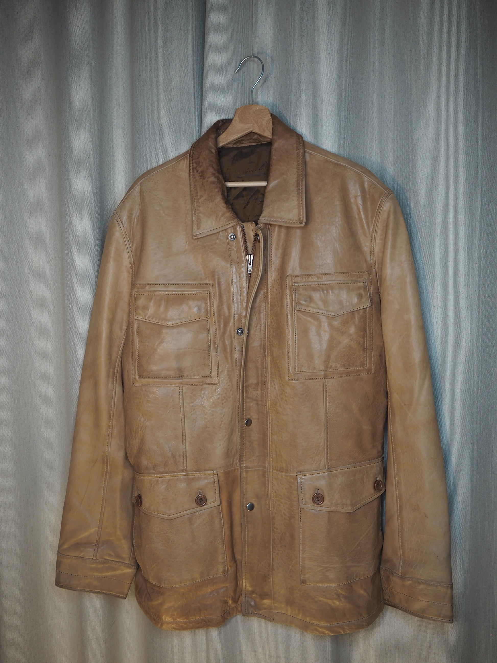 Wyselekcjonowany vintage z lat 80, kurtka skórzana w rzadko spotykanym jasnym odcieniu, którą odświeżyłem, naprawiłem oraz zaimpregnowałem w zależności od rodzaju skóry.