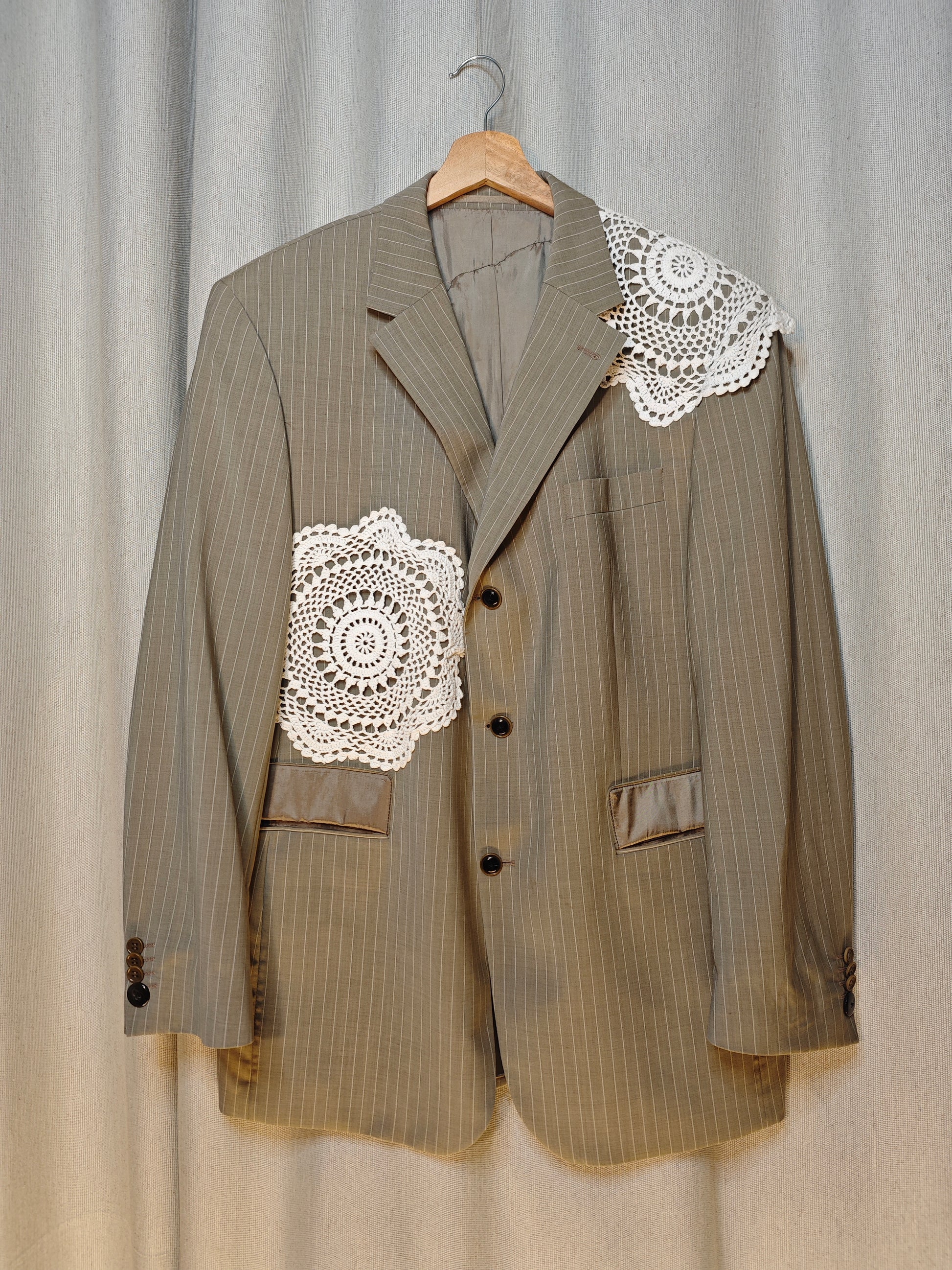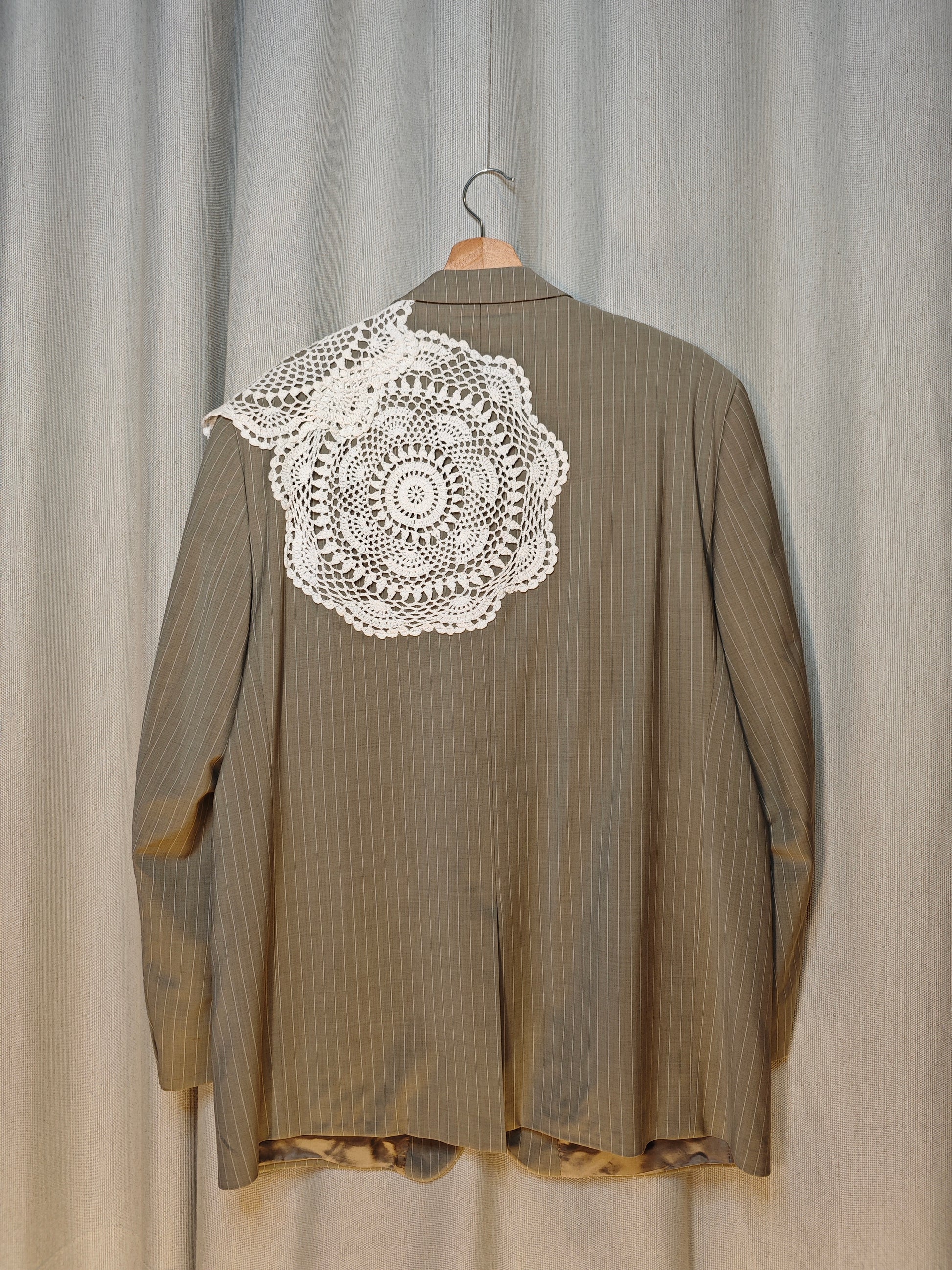 My custom project based on upcycling a vintage blazer, a carefully selected gem from the second-hand market.