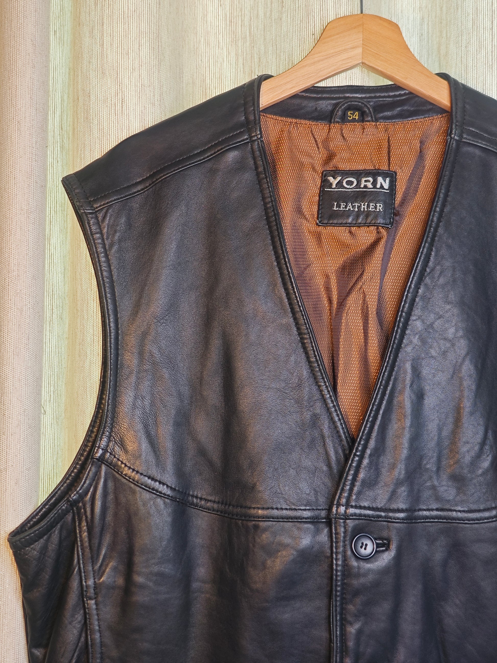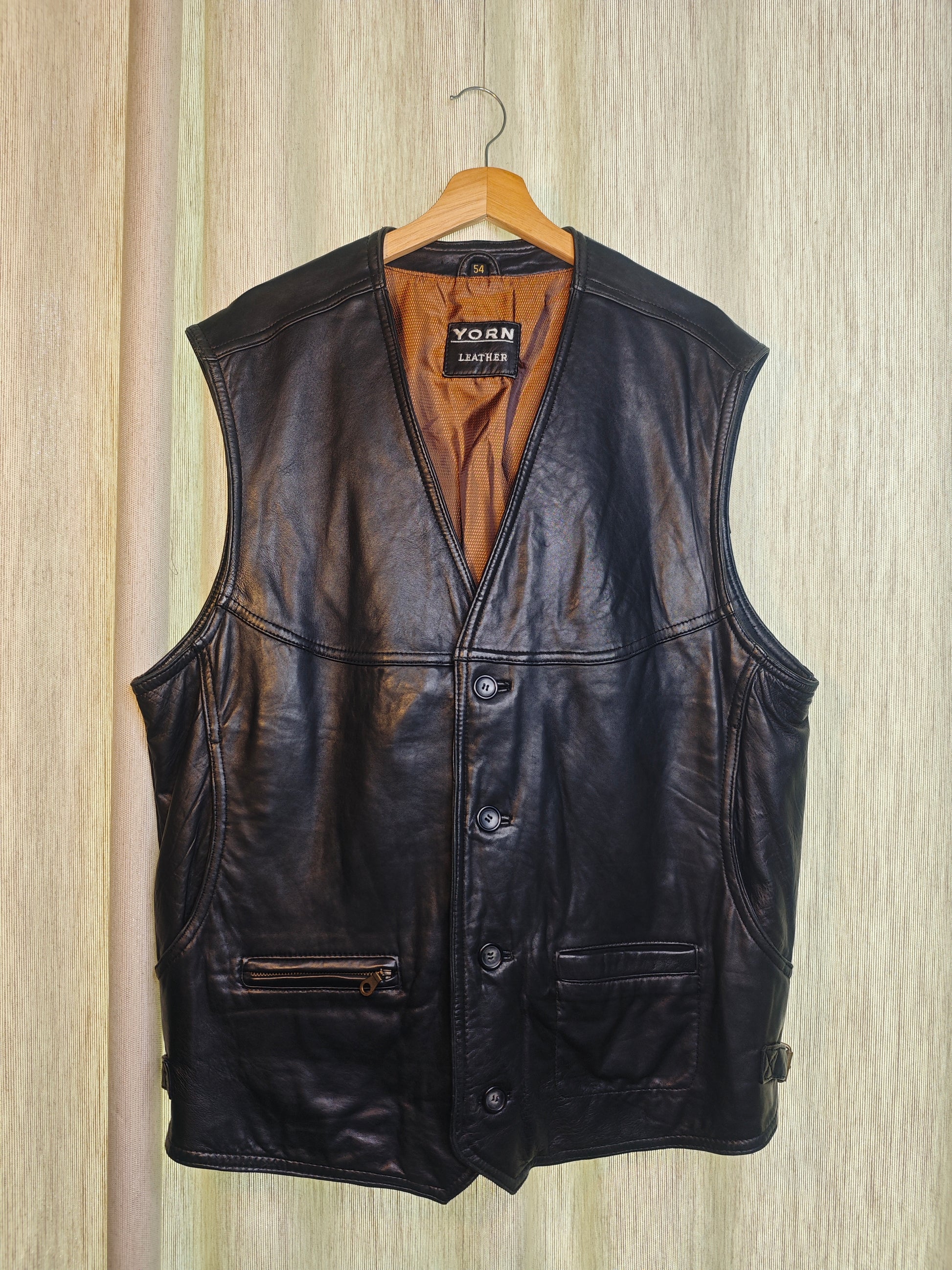 Unikatowa kamizelka skórzana vintage z lat 80 cechuje naturalna skóra, ponadczasowość kroju, podszewka, ściągacz na dole.